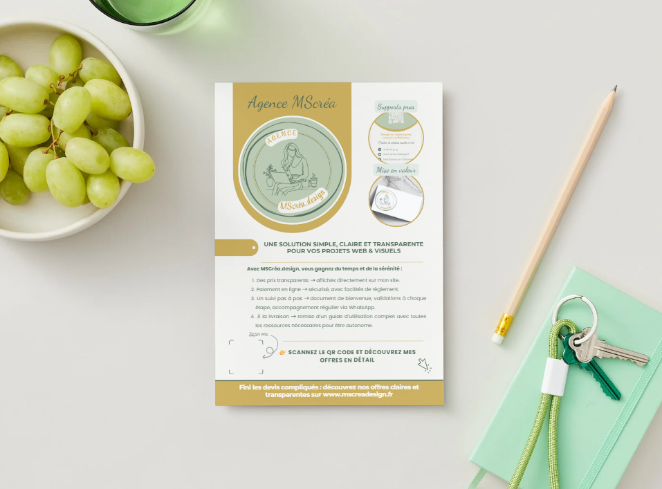 - Flyer 100 % personnalisé (format A5, A6 ou A4, recto ou recto-verso, en 300 dpi).